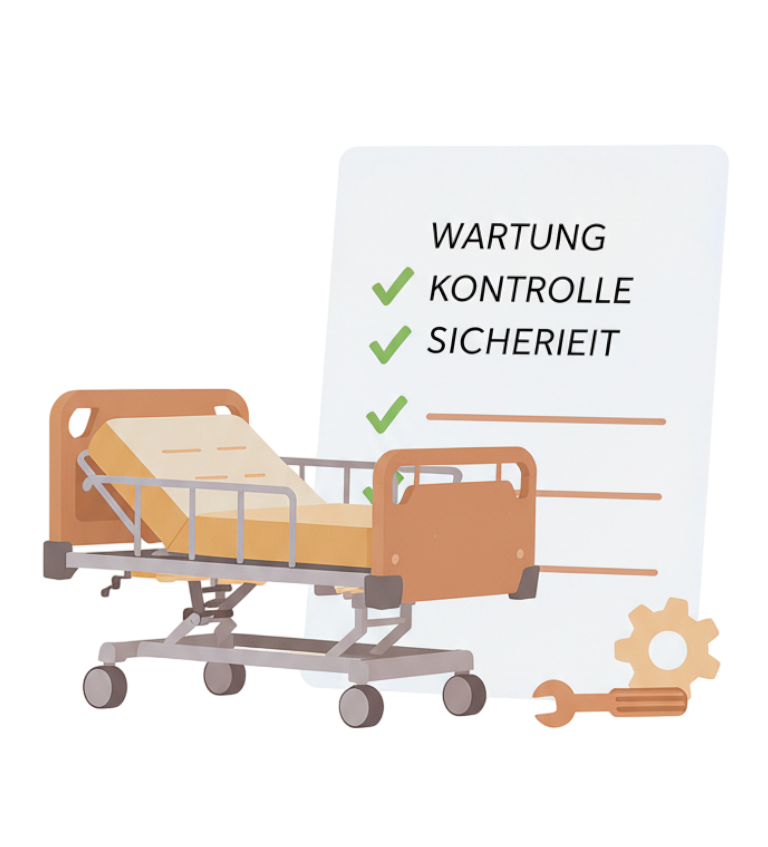 Damit Ihr Pflegebett jederzeit zuverlässig funktioniert, kümmern wir uns um die regelmässige Wartung. Unsere Fachleute prüfen alle wichtigen Funktionen, kontrollieren die Sicherheit und sorgen dafür, dass alles einwandfrei läuft. Auf Wunsch erinnern wir Sie automatisch an anstehende Service-Termine, damit Sie sich um nichts kümmern müssen.